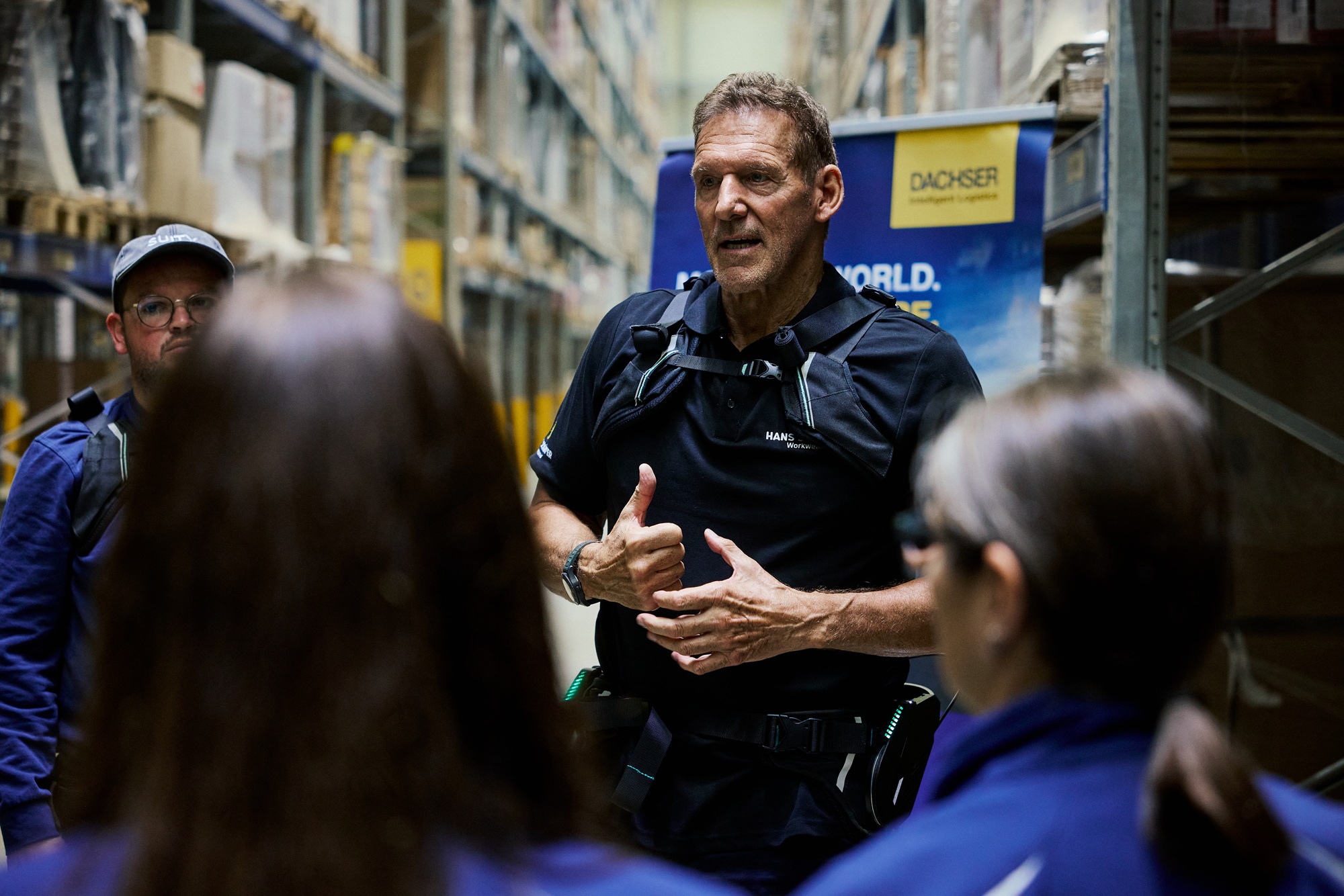 The test on the new IX BACK VOLTON with Ralf Moeller highlighted how seamlessly the technology is already integrated into daily workflows and the difference it makes for employees. “My team should feel good – when they get home and even into retirement,” emphasized Klaus Neubing, General Manager DACHSER Hochfranken. Christian Richter, Project Coordinator, added: “Employee health at our sites is a top priority, including for senior management. Exoskeletons play a key role in that.”